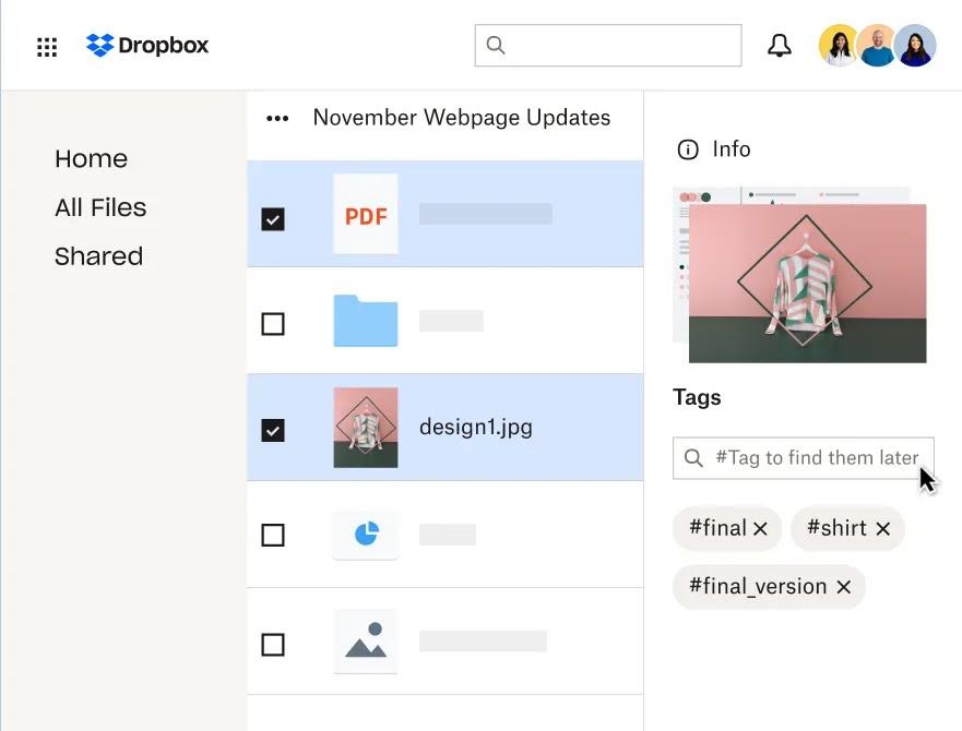Thư mục tự động là một tính năng mới từ Dropbox có thể tự động đổi tên tệp trong thư mục, nhóm các mục thành thư mục con và hơn thế nữa. Nó có thể được cấu hình với nhiều quy tắc khác nhau, hiện đã được xác định trước, nhưng Dropbox đang làm việc để làm cho hệ thống có thể tùy chỉnh nhiều hơn. Dropbox cũng đã thêm một hệ thống gắn thẻ mới, một tính năng được gọi là Quy ước đặt tên có thể đổi tên hàng loạt tệp và tính năng Tổ chức nhiều tệp có thể sắp xếp tệp thành các thư mục con dựa trên tần suất mọi người thực hiện thay đổi đối với chúng. Các tính năng mới hiện có sẵn cho người dùng Dropbox for Teams và sẽ sớm có sẵn cho những người có gói cá nhân hoặc gia đình.